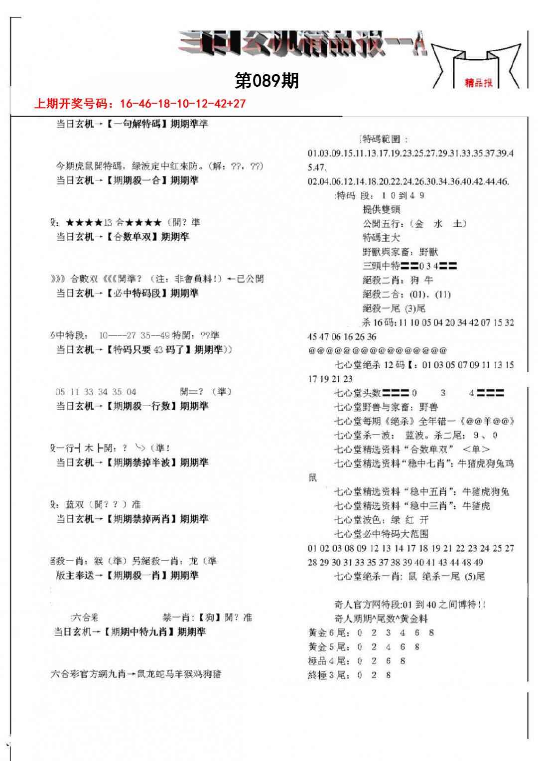 当日玄机精品报A